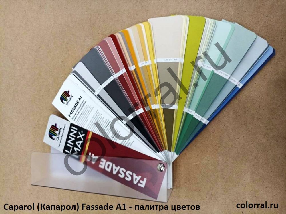 Палитра  Caparol (Капарол) Fassade A1 содержит 500 оттенков, подходящих в первую очередь для фасадных поверхностей. Данная палитра может использоваться для колеровки фасадных и интерьерных красок.